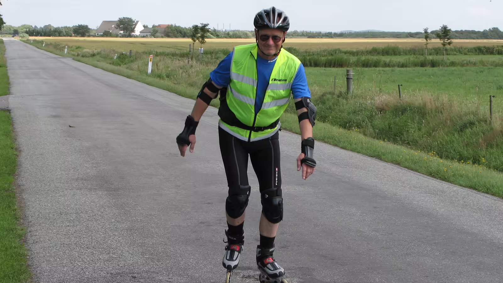 Christian Ulf, der fremviser ruten, solgte sin møbelforretning i 2005 og løber nu på rulleskøjter flere gange om ugen. Mine andre favoritruter er den nedlagte banestrækning Nibe-Aars, Frederikshavn-Skagen og stisystemet i Aalborg Øst. Jeg ruller oftest i Nordjyllands Inline Motionister, hvor dygtige løbere gerne deler ud af deres erfaringer, og giver gode råd. Her er god klubånd og en medlemsskare, der aldersmæssigt går fra 15 – 75 år, så der er plads til alle uanset niveau, siger han.